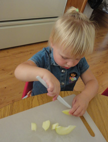 The plan was to cut up our apples that we picked from the tree to make applesauce. The apples didn't make it. They got eaten before they made it to the cutting board! Oh well....
