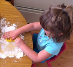 Playing with pancakes was so much fun, we used pink playdough to practice making pancakes.