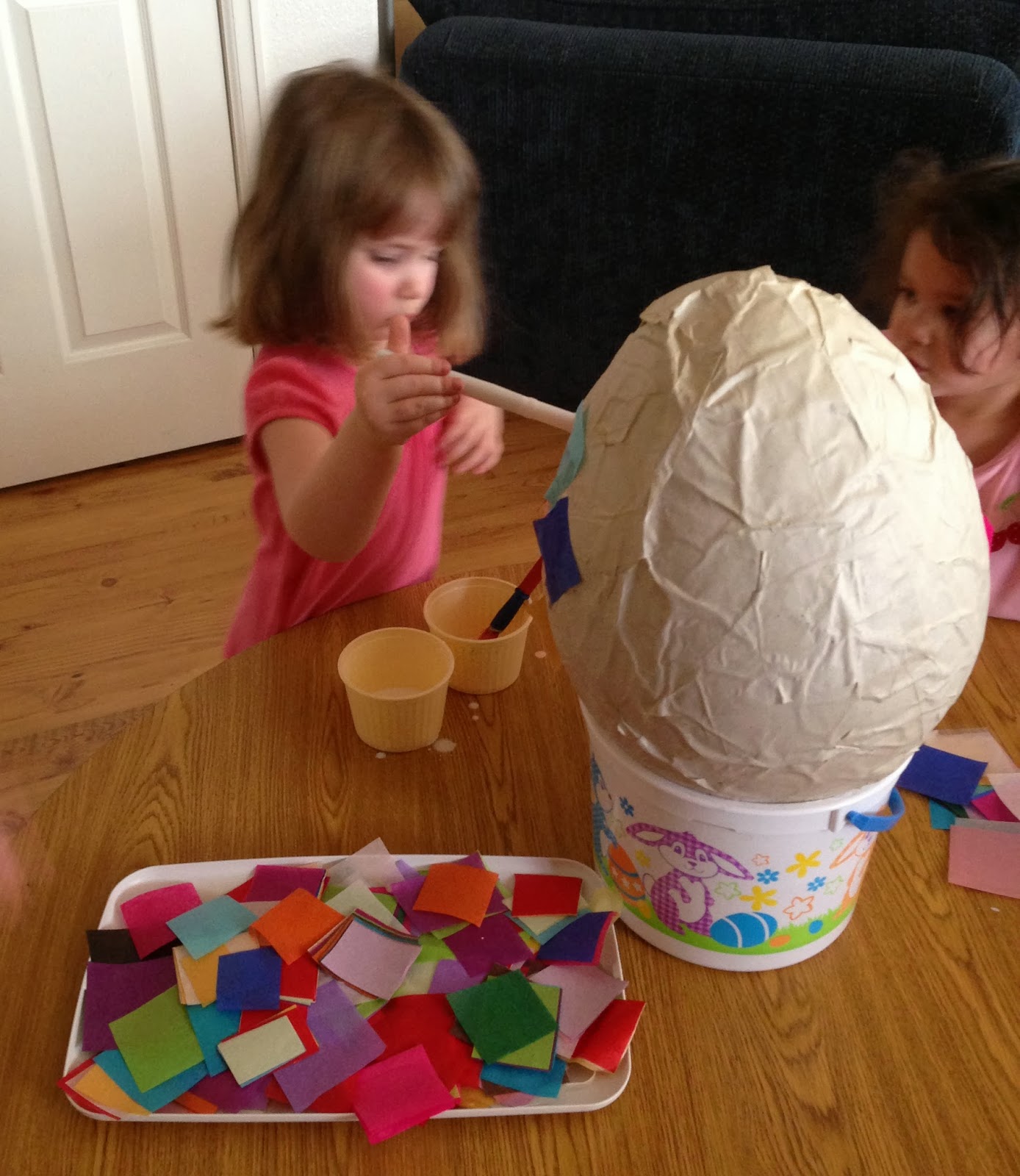 We used diluted glue and pieces of colored tissue paper to make our pinata bright and colorful.