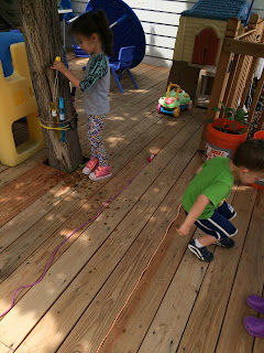 We played Hippo River Jump. We made a river with jump ropes and took turns jumping over the river filled with hippos. Hippos are pretty aggressive creatures, so we had to be careful not to land in the river. The river became wider as we mastered jumping.