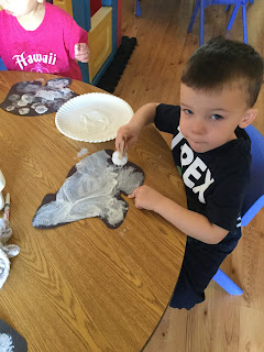 We made a whale tooth necklace of our own. The “teeth” were made out of plaster and water mixed to the consistency of toothpaste. Inuit might carve a picture on the tooth. When dry, we used markers to decorate the "tooth" and added lacing so we could wear it around our necks.