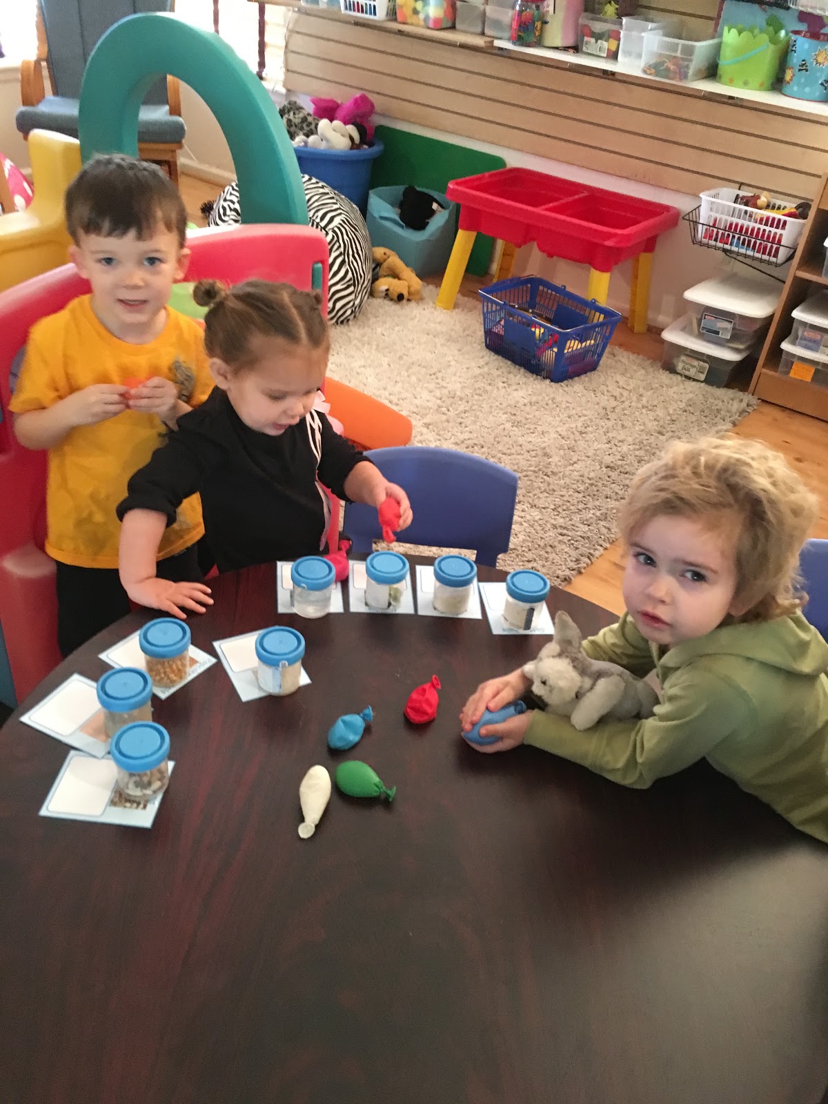 We played a matching game with smells. We matched the scents in smell jars to pictures on cards.