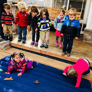 Musical ice floes" gave us a chance to move around in the ocean like penguins. We had to listen for the music to stop and then find an ice floe to jump on.