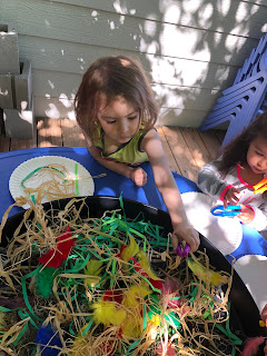 we made our own spider web of yarn throughout our play yard and crawled under and over the giant web.